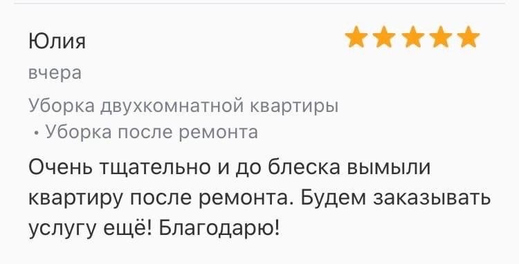 Мы гарантируем качественную уборку и выполнение обязательств договором. Что то пошло не так? Исправим недостатки бесплатно